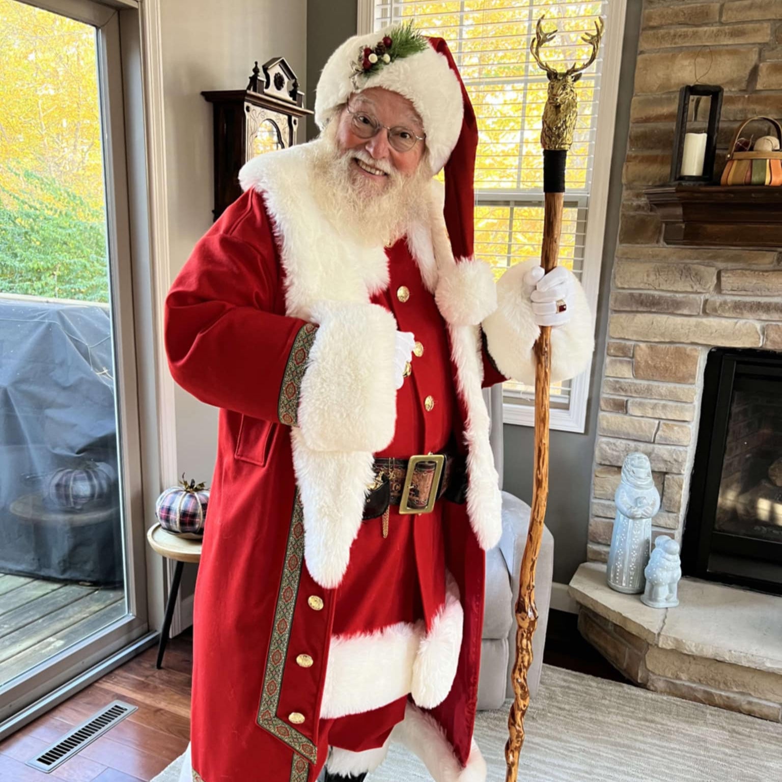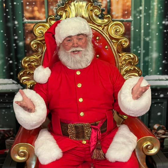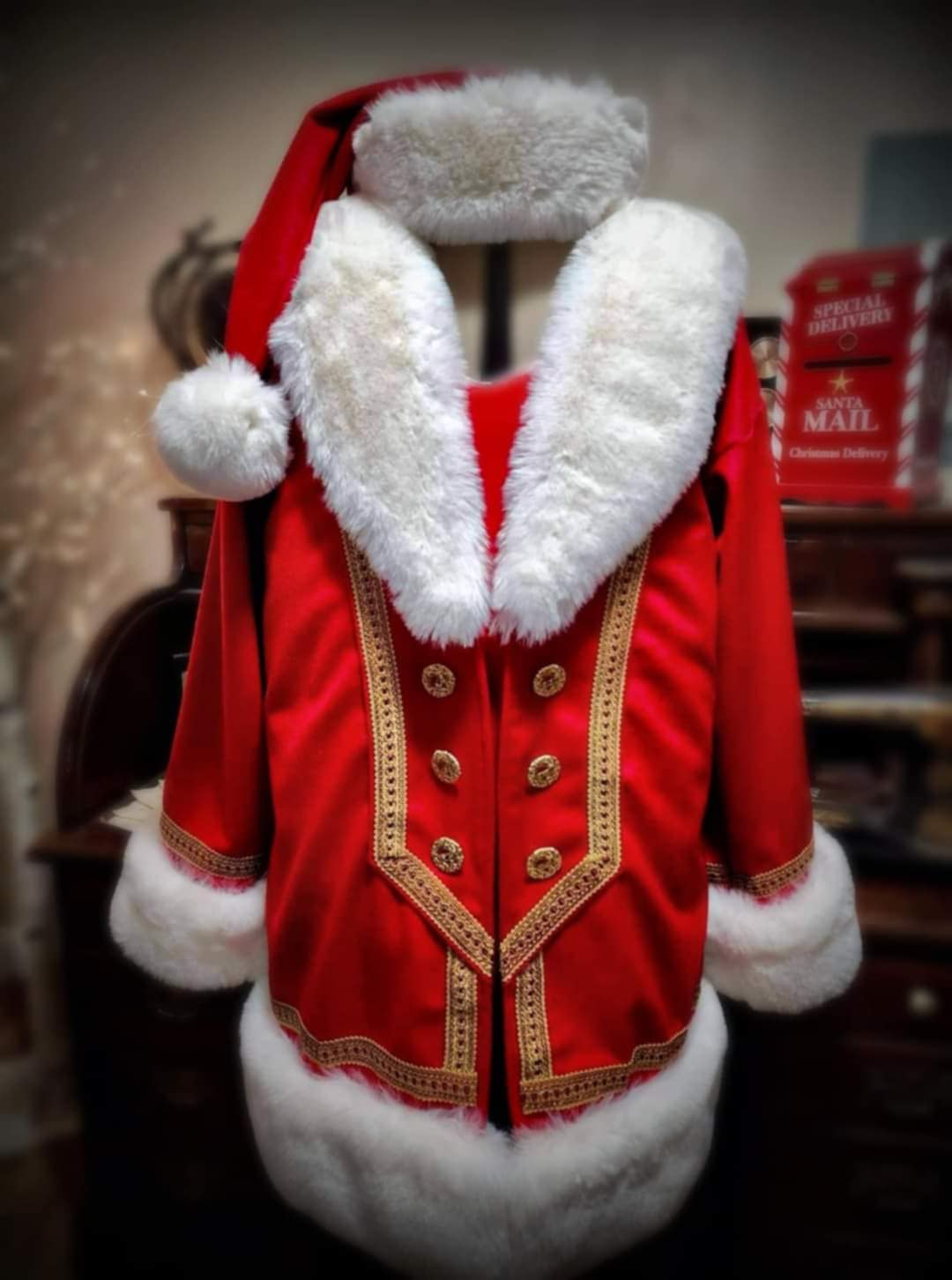 Santa Sean Fairburn in an Angie's Originals Parade Coat, Tunic Vest, and Hat.