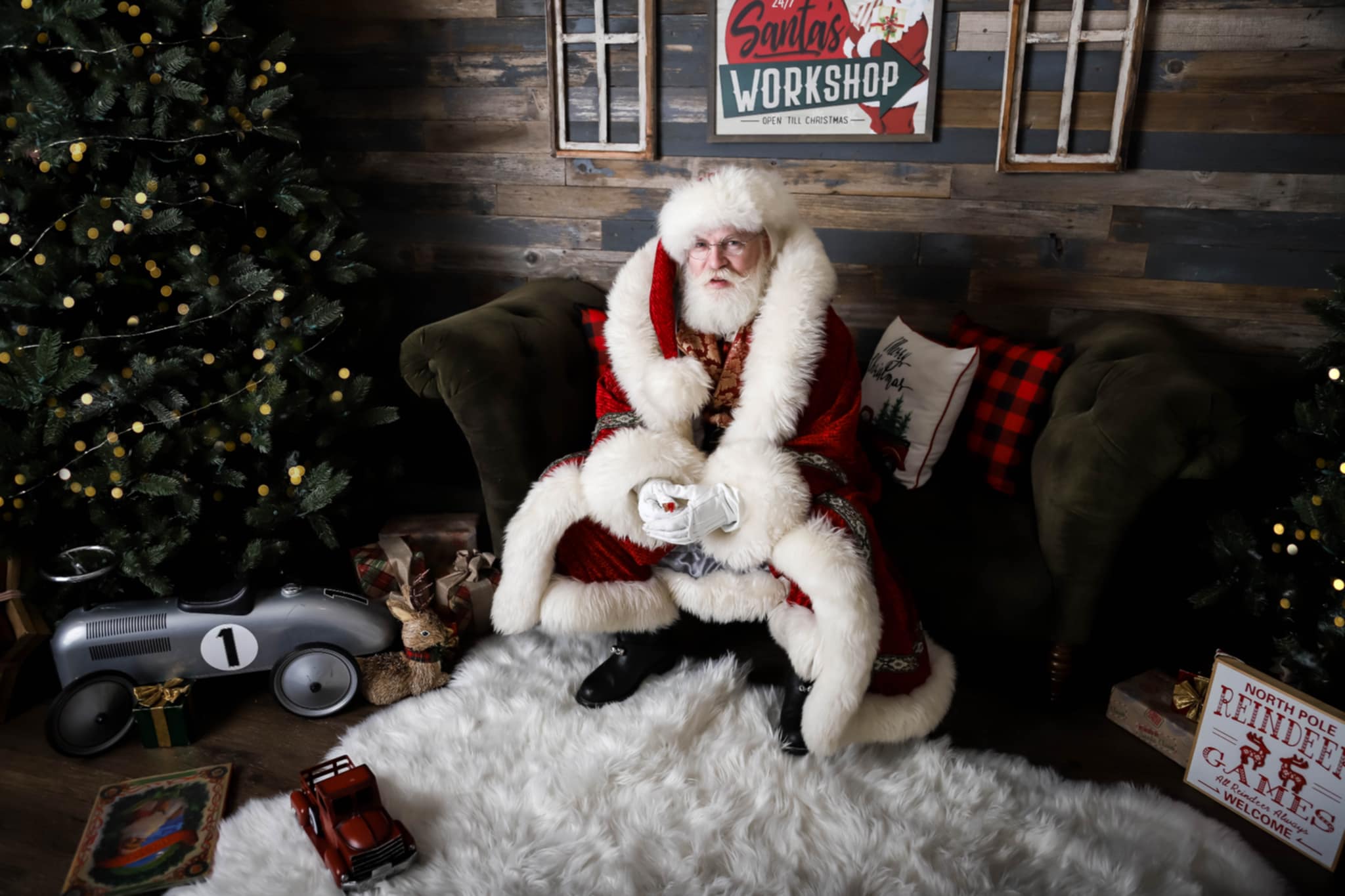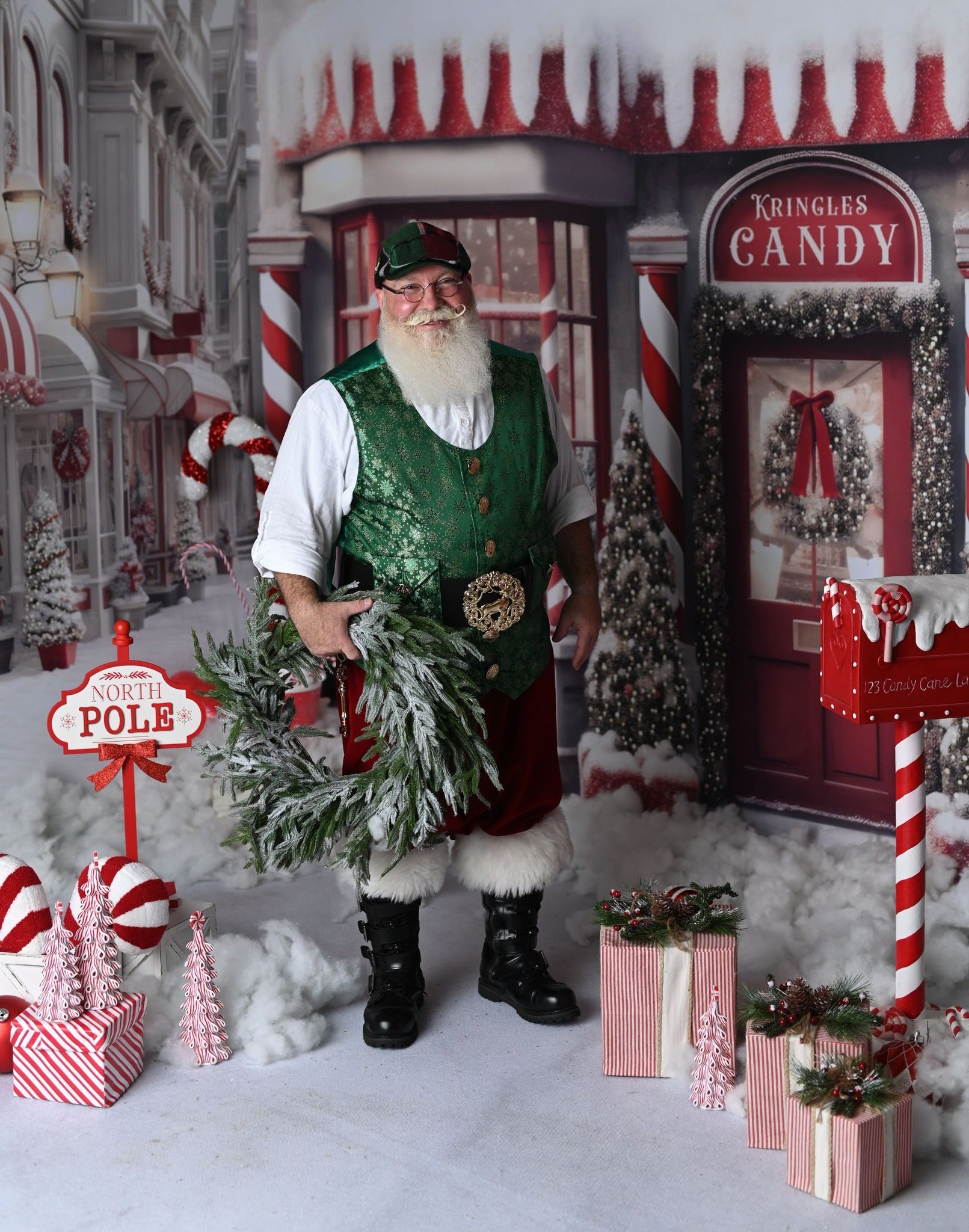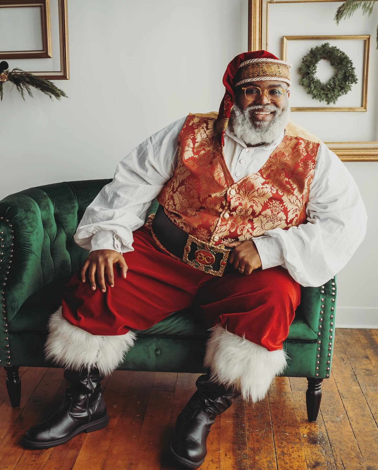 Santa Sean Fairburn in an Angie's Originals Parade Coat, Tunic Vest, and Hat.