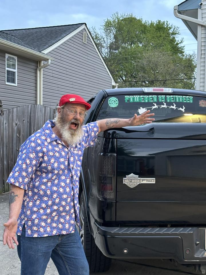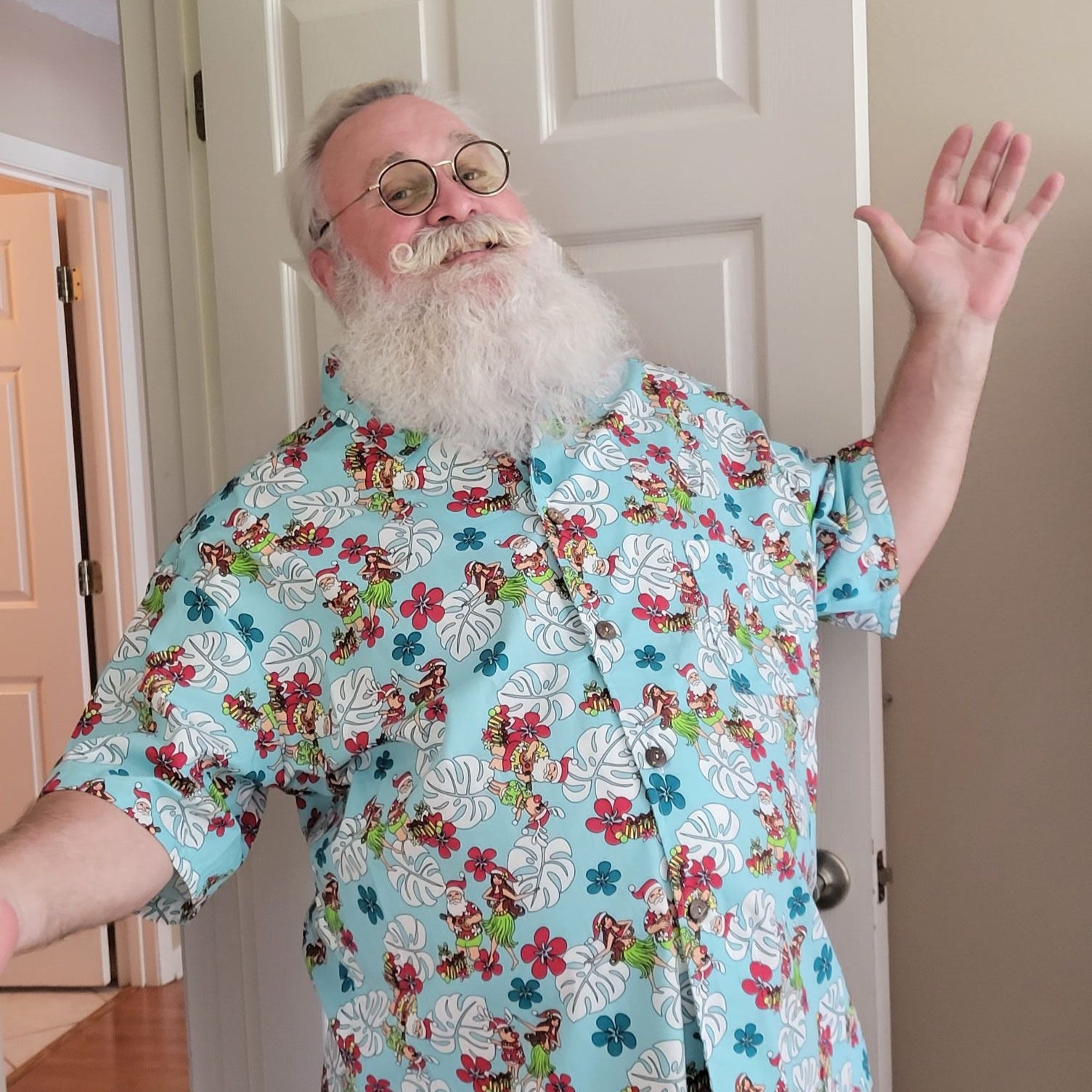 Santa Allen Klaugh in an Angie's Originals Hawaiian Shirt
