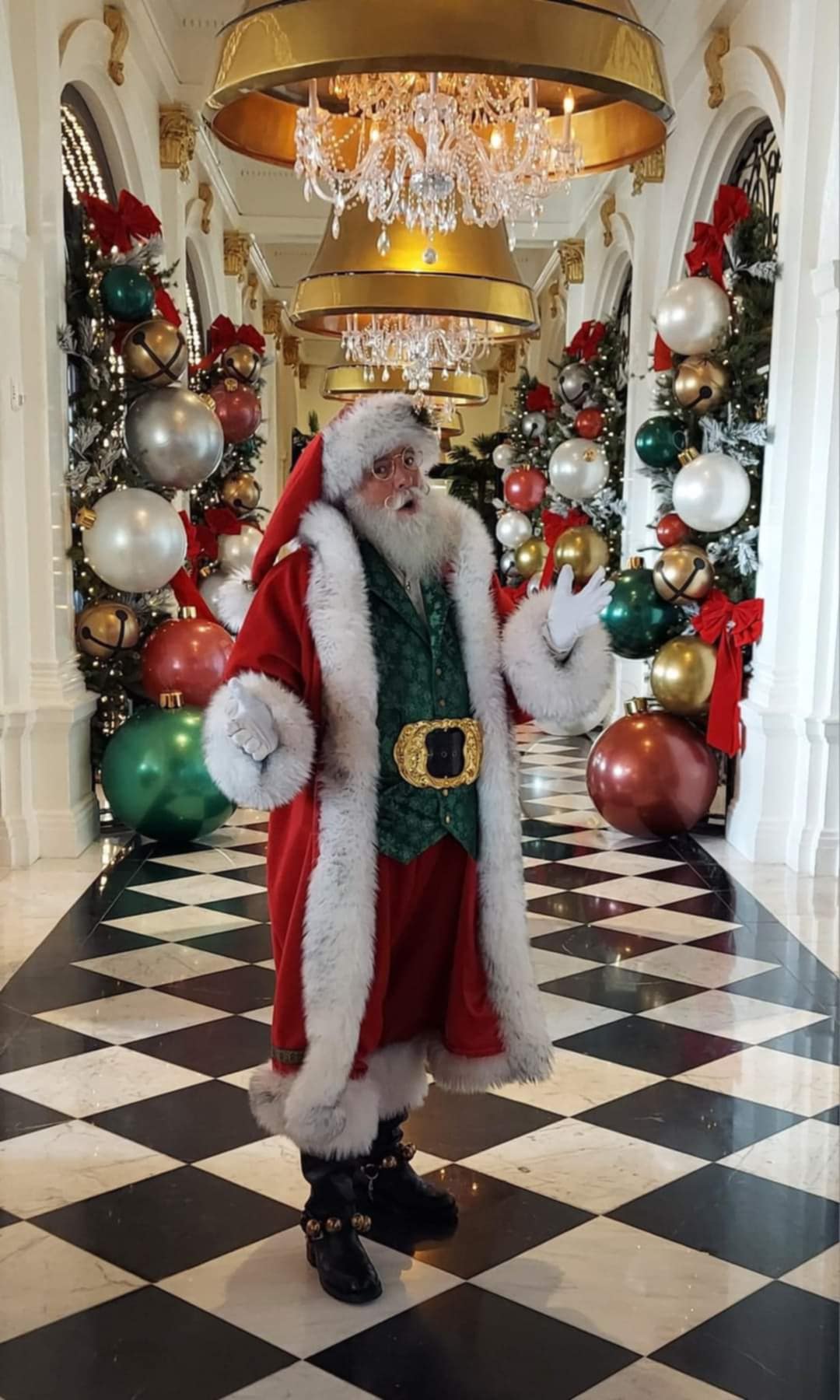 Mr and Mrs Santa outfits by Angie's Originals, these matching outfits secured our 12 day booking together at the Greenbrier Hotel In WSS, WV this year the 2025 season and I am very Thankful to Angie for making Us look so magnificent - Santa Jimmy and Mrs. Claus in Angie's Originals