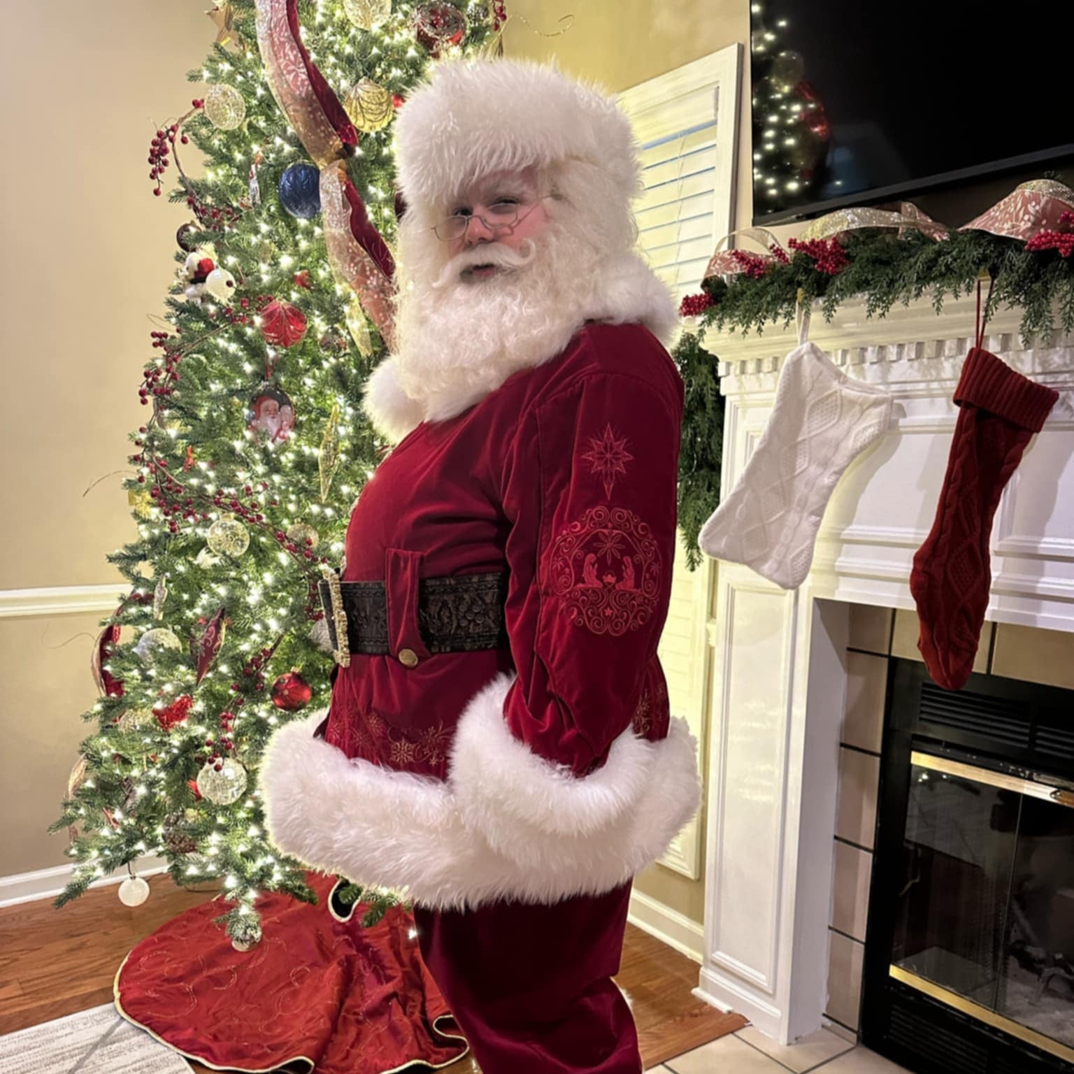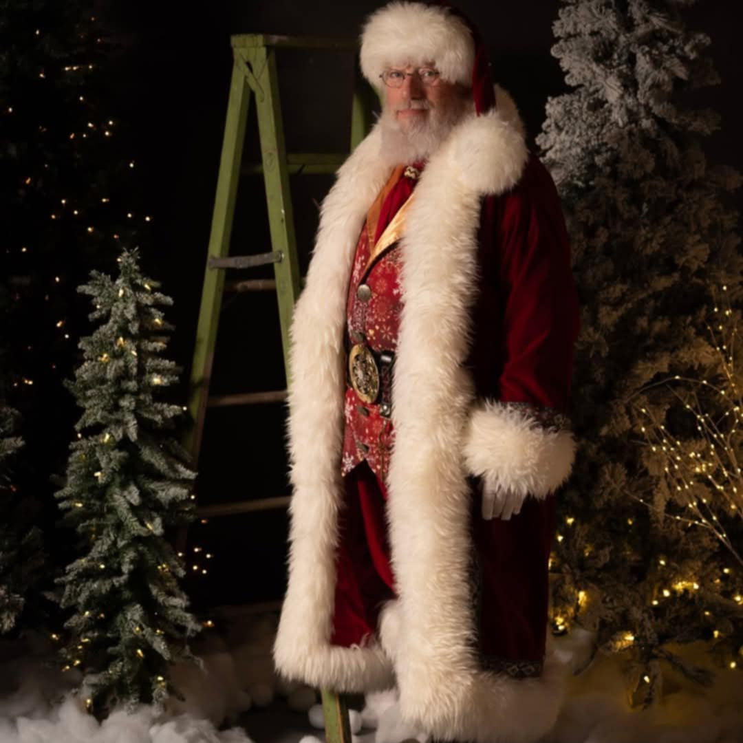 Santa JT Witcher in an Angie's Originals Regal Suit, and Hat.