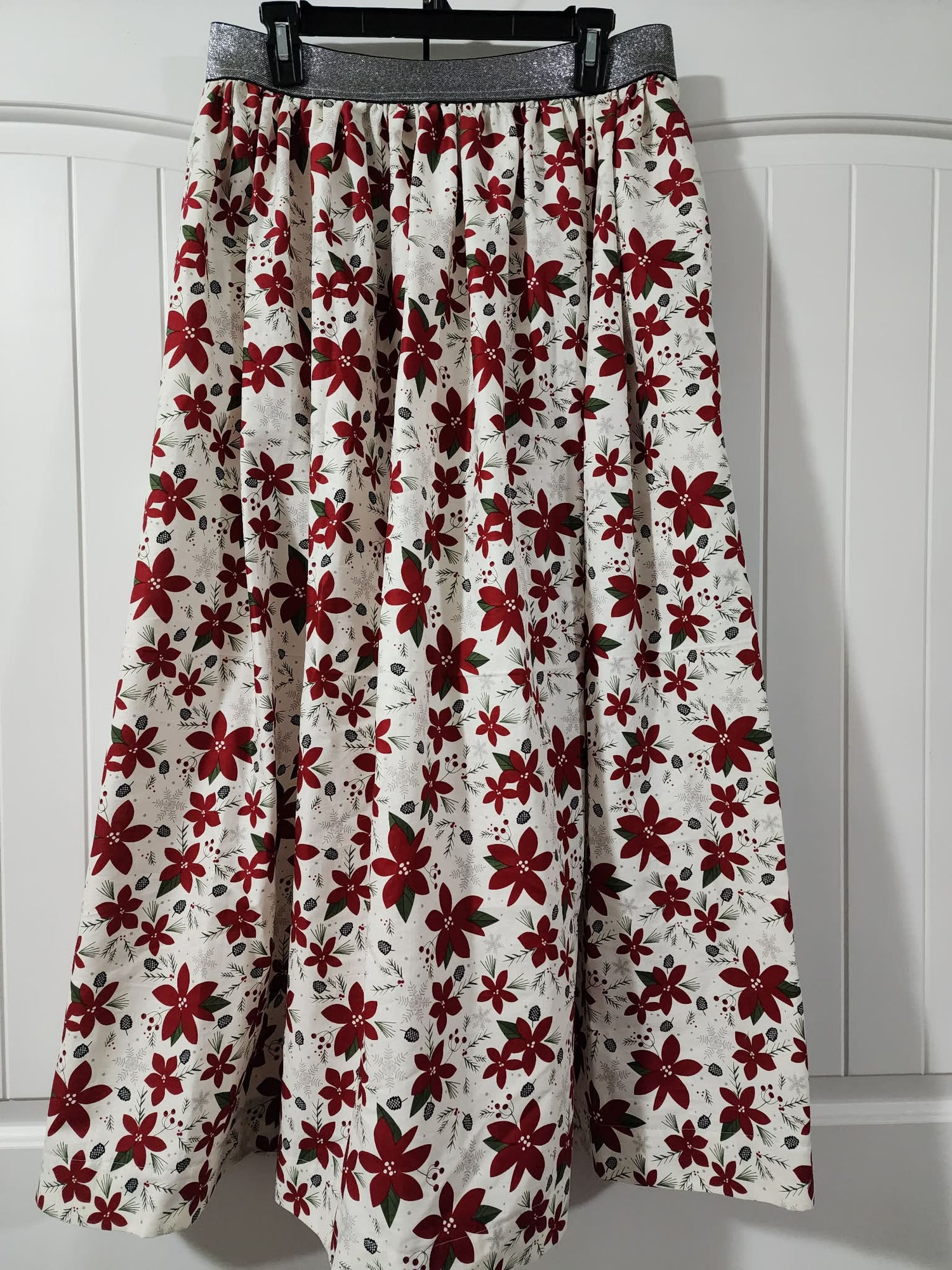 Our Mrs Claus Skirts can be made to match any item with every kind of fabric we have available to be made for the skirt. All of our skirts include pockets and an elastic waistband. Starting price is $150