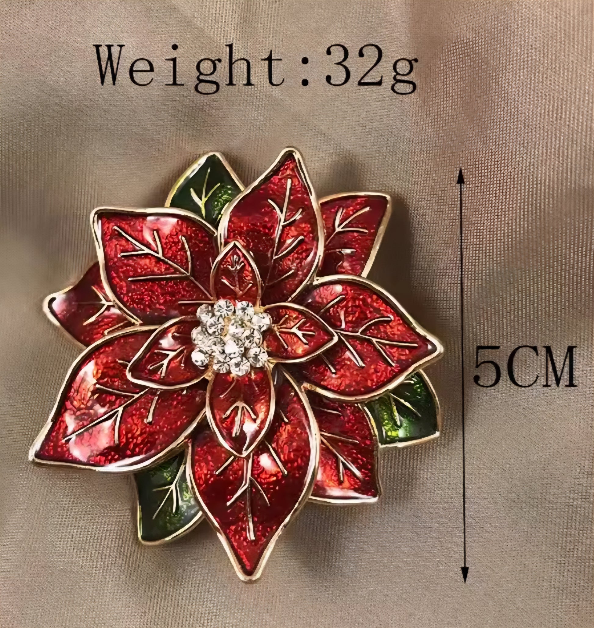 Elevate your style with our Gold Poinsettia Brooches. Put them on a suit, hat, or vest to add a subtle shine. These eye-catching accessories, just bigger than a quarter, will elevate any outfit.