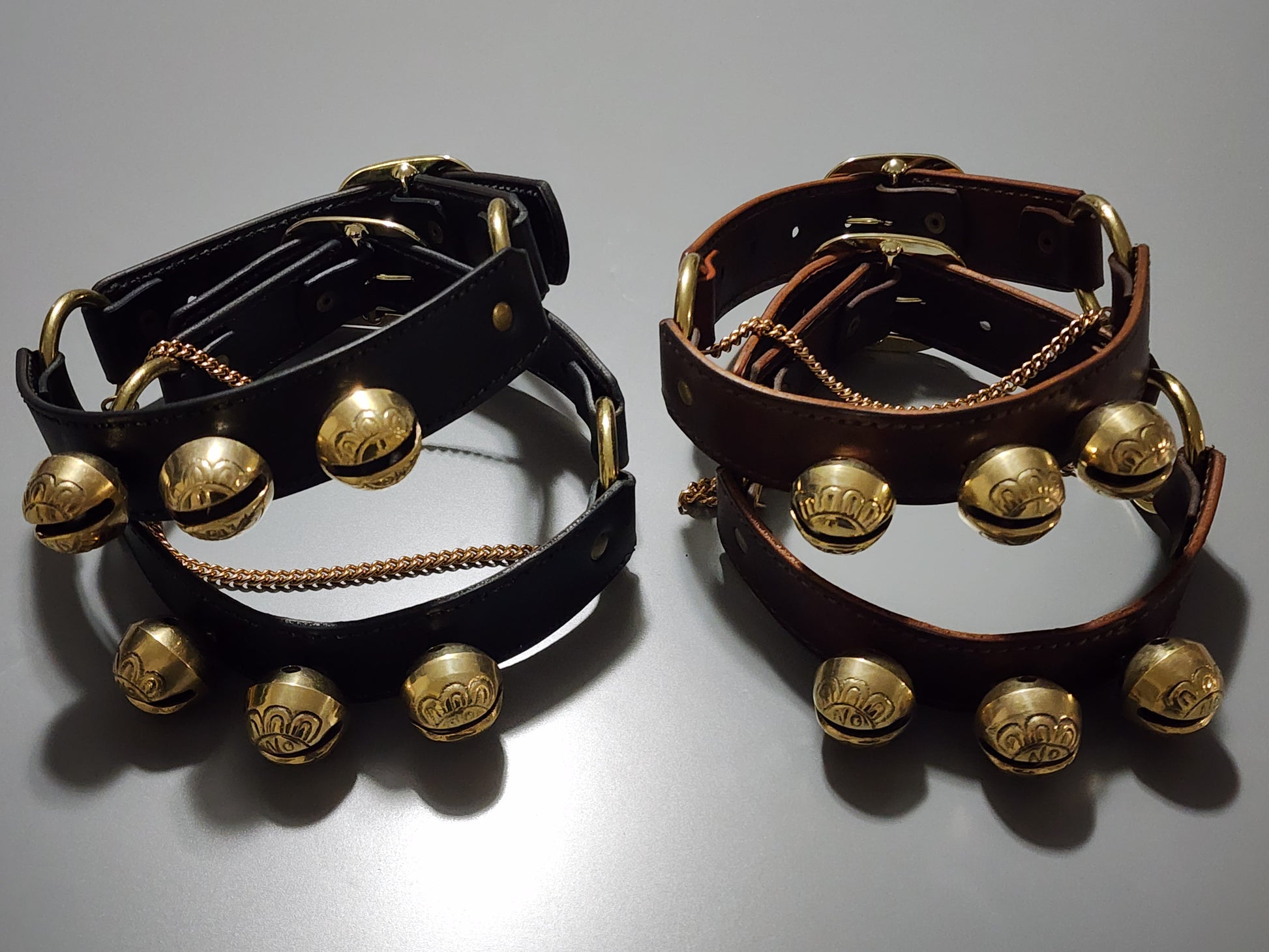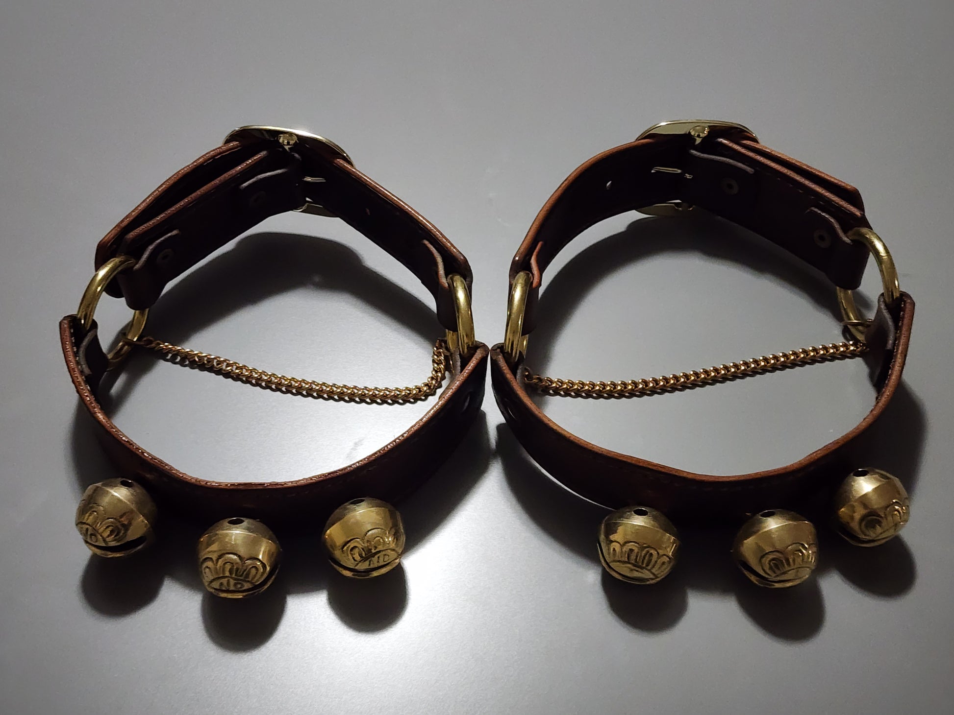 Our New Boot Straps with Bells are made by Triple G leather, Angie's brother. They are made with real leather and solid brass cast bells. They also feature a new covered backing to the bells to prevent any wear and tear on your boots where the bells are strapped.